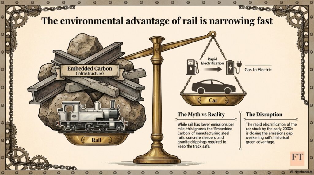 Many argue that this is the price we must pay for an environmentally friendly form of transport. The Climate Change Committee’s figures show that emissions per passenger mile are very much lower for rail than for the car (but only a little better than for the bus). This however is an exaggerated difference. The focus is pollution coming from powering the (sometimes electric) train, compared with propelling an existing car stock that uses mostly petrol or diesel. It neglects emissions associated with engineering work involved keeping the track infrastructure safe, and that for rail involves using a great deal of material energy intensive in its manufacture (think steel rail, concrete sleeper and granite chippings).